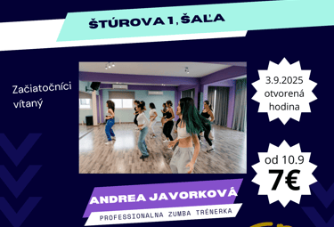 Zumba je tanečný fitness program, ktorý kombinuje latinskoamerické rytmy s jednoduchými kardio pohybmi pre zábavné a energické cvičenie. Každú stredu od 18:30